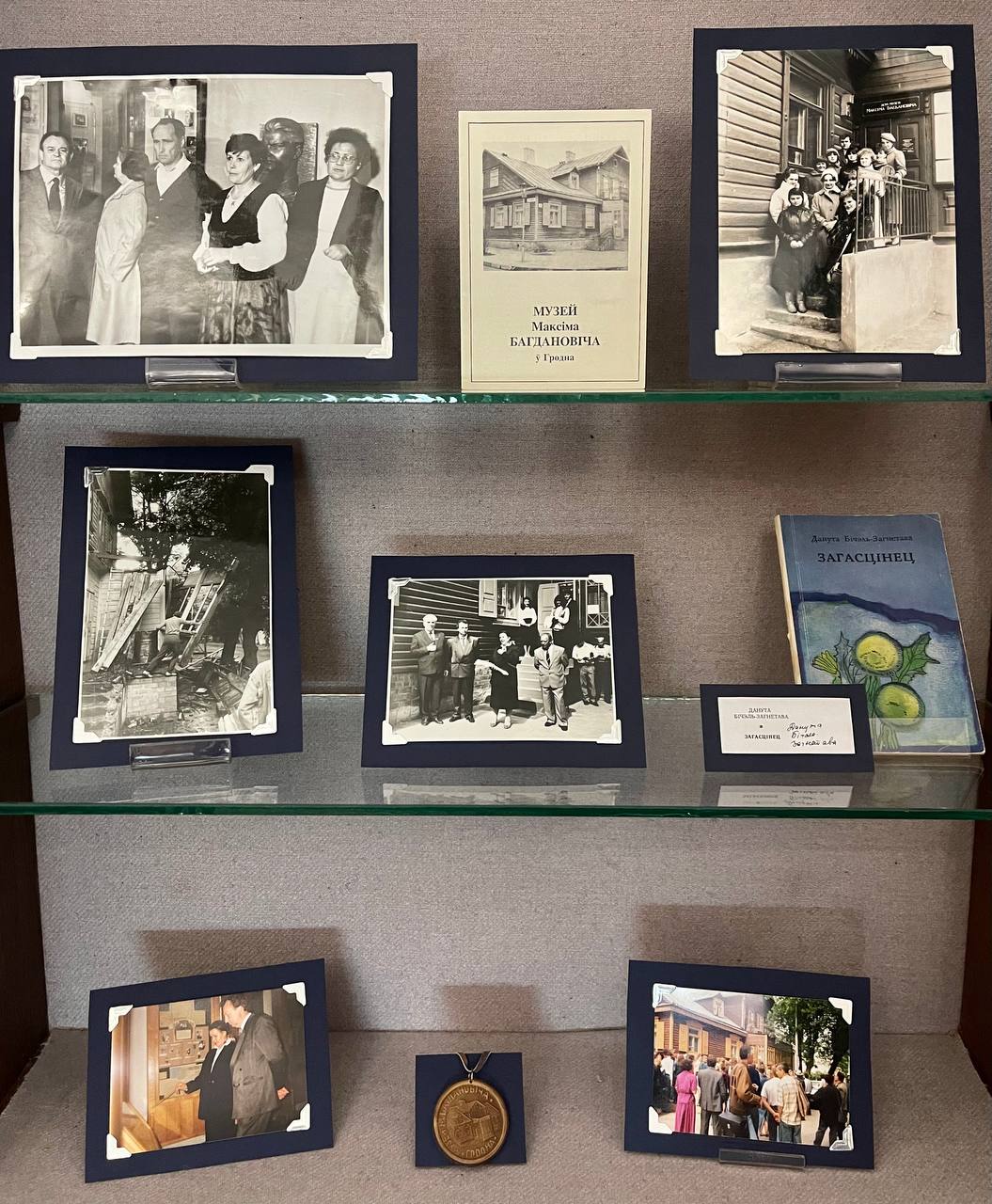 На фотографиях изображена Данута Бичель-Загнетова с посетителями в экспозиции (1986), здание музея во время ремонтных работ в 1990-х годах, торжественное открытие обновлённой экспозиции с участием народного поэта Беларуси Нила Гилевича, министра культуры и печати Республики Беларусь Анатолия Бутевича, начальника отдела культуры Гродненского областного исполнительного комитета Вячеслава Брикача и других гостей (1994).